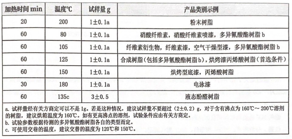 備注:如果色漆、清漆和漆基的兩個(gè)結(jié)果(兩次測(cè)定)之差大于2%(相對(duì)于平均值)或者聚合物分散體的兩個(gè)結(jié)果之差大于0.5%,例如53.7%和53.1%,則需按測(cè)試步驟重做。