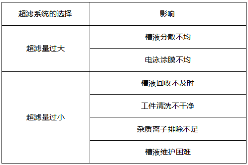超濾系統(tǒng)在設(shè)計時就需要考慮涂裝產(chǎn)能、涂裝物的結(jié)構(gòu)以及槽體大小,根據(jù)條件情況選擇合適的超濾系統(tǒng),不合理的選擇不僅有損槽液及涂膜質(zhì)量,還增加投入成本。