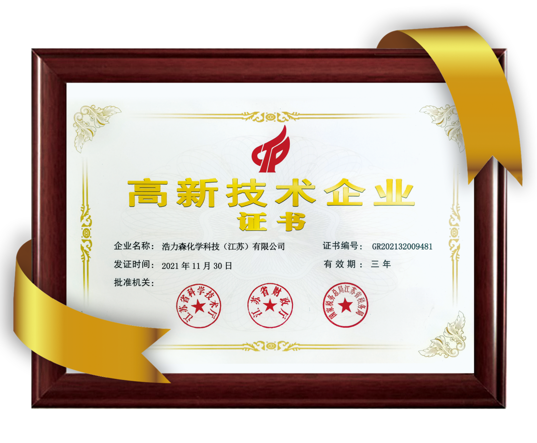 近日,浩力森化學(xué)科技(江蘇)有限公司繼獲“省級(jí)企業(yè)技術(shù)中心”資質(zhì)認(rèn)定后再添榮譽(yù),經(jīng)高新技術(shù)企業(yè)認(rèn)定管理工作領(lǐng)導(dǎo)小組評(píng)審,獲“高新技術(shù)企業(yè)”認(rèn)定!