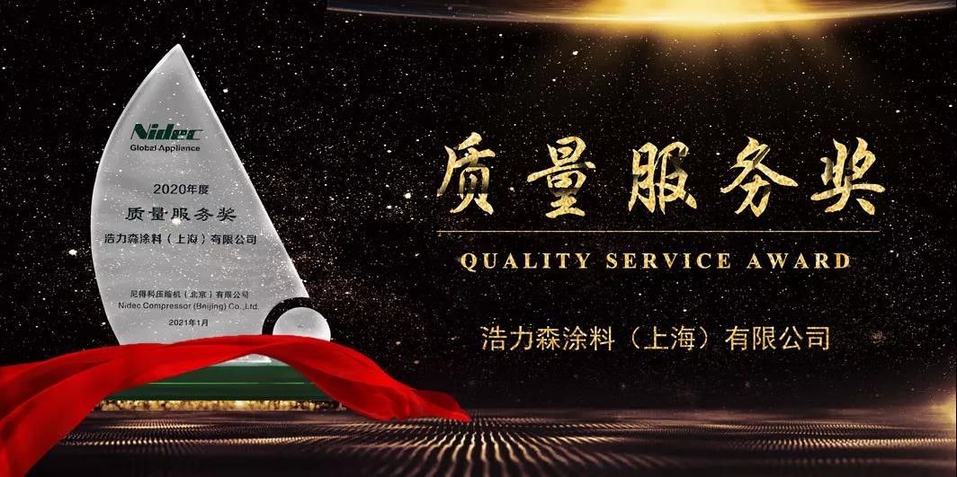 今年,浩力森涂料作為尼得科的優(yōu)秀供應商,憑借雄厚的品牌實力、優(yōu)秀的產(chǎn)品品質(zhì)、專業(yè)的技術(shù)服務,榮獲尼得科“質(zhì)量服務獎”。充分體現(xiàn)了尼得科對浩力森的認可與肯定,同時驗證了浩力森旗下產(chǎn)品過硬的品牌實力和專業(yè)的技術(shù)能力。