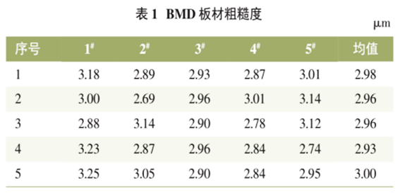 重卡車架采用水洗拋丸板,按Q/JQ16427《BMD板材電泳涂裝技術(shù)要求》,BMD 板材外觀不應(yīng)有影響電泳涂裝后的外觀質(zhì)量缺陷,不應(yīng)有影響漆膜附著力的氧化膜,表面粗糙度 Ra(0.8mm測(cè)長(zhǎng))要求均值3.0μm,最大值<3.5μm,涂油量5g/㎡?,F(xiàn)場(chǎng)對(duì)BMD板材進(jìn)行外觀檢測(cè),其中粗糙度Ra檢測(cè)數(shù)據(jù)見表1。