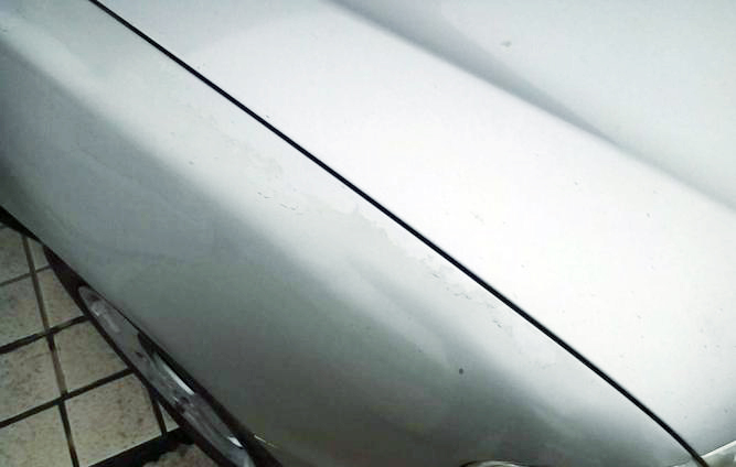 B2色漆濕膜流平不充分,漆膜表面形成褶皺,導(dǎo)致漆膜表面粗糙,產(chǎn)生橘皮缺陷??梢酝ㄟ^延長B2濕膜的閃干時間,調(diào)整B2油漆的配方,控制油漆的黏度、輸調(diào)漆系統(tǒng)的溫度及噴漆室的溫濕度等措施,使B2色漆濕膜充分流平。