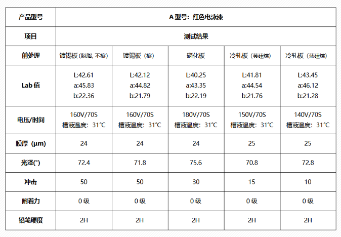 備注:以上前處理類型選用市場上最常見、使用頻率較高的型號。(A型號磷化、B型號硅烷)