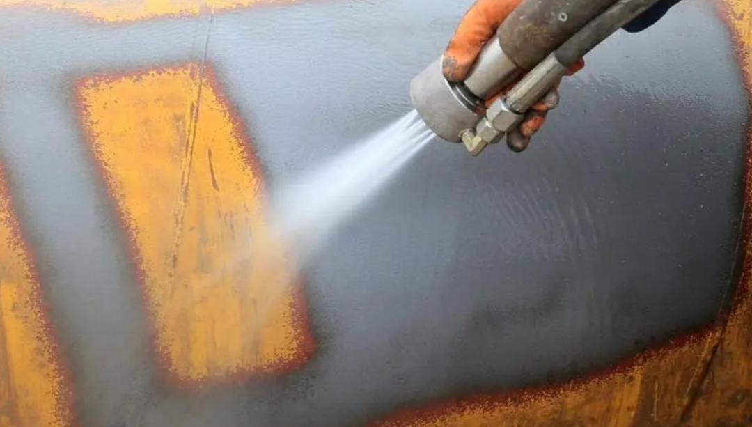 行業(yè)內(nèi)也有采用高壓清理的方式,有的掛具如未經(jīng)高溫烘烤的水性漆的漆膜軟,用高壓水槍即可沖洗掉,有的掛具如未經(jīng)烘烤但干結(jié)了的電泳漆濕漆膜,單一采用高壓水槍很難清理干凈,需要配合磨料才能將漆膜去除掉。