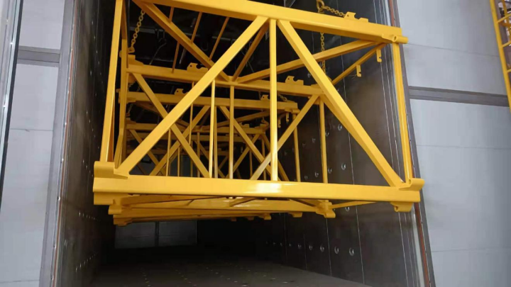 每次噴涂后設(shè)置閃干工序,確保大量揮發(fā)出來(lái)的水分能夠及時(shí)地排出,確保漆膜良好的外觀光澤;閃干工序之后設(shè)置烘干工序,完全干燥漆膜。一方面促進(jìn)水性底漆表干,減少底面漆“濕碰濕”之間的閃干時(shí)間,提高生產(chǎn)效率。采用熱風(fēng)對(duì)流循環(huán)對(duì)結(jié)構(gòu)件表面進(jìn)行加熱,為減少熱量交換的熱損失,采用效率相對(duì)較高的直燃式天然氣加熱方式。經(jīng)驗(yàn)證明前道工件表面溫度以(15-35) ℃為宜,過(guò)高的溫度會(huì)影響底/面漆的流平和固化反應(yīng),可能產(chǎn)生起泡、干噴等缺陷,同時(shí)浪費(fèi)烘烤能源。