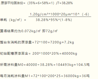 第一步先計算該產(chǎn)品用于車身涂裝的單耗