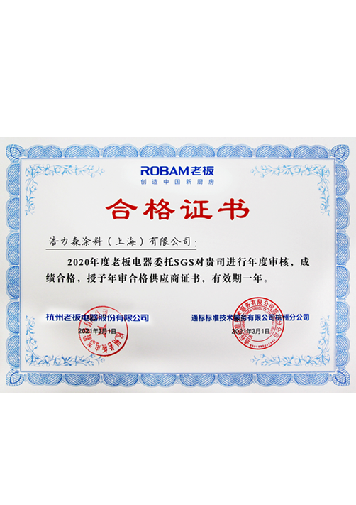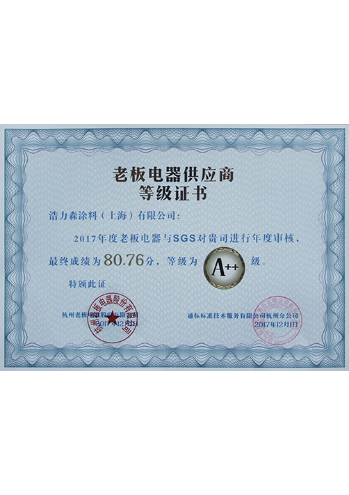 老板電器供應(yīng)商等級(jí)證書