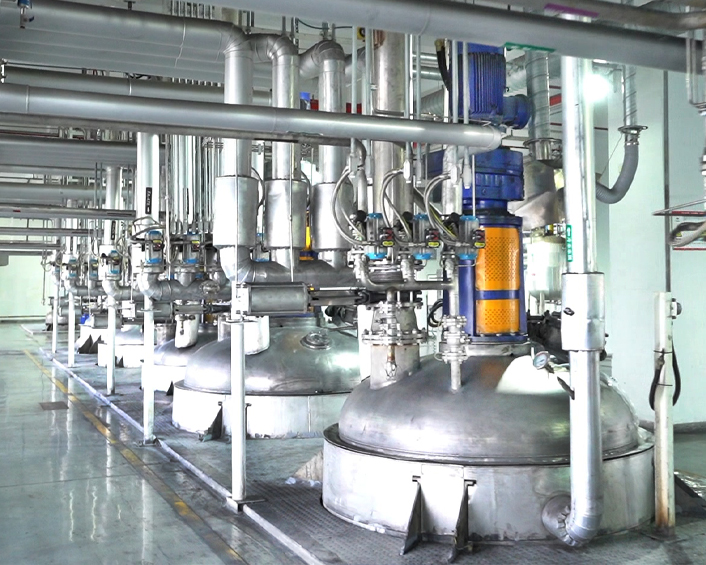 智能合成車間:生產(chǎn)改性樹脂、交聯(lián)固化劑、乳液等產(chǎn)品;生產(chǎn)工序自上而下一氣呵成,做到高效、保質(zhì)、安全。